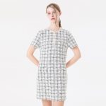 – เดรสทรงตรงผ้าทวีตสีเทาอ่อน