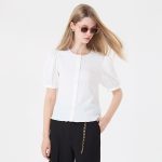 คีย์ลุคความเนี้ยบอย่างมีสไตล์ด้วย เสื้อเบลาส์แขนสั้น ทรงพอง (Puff Sleeves) สีออฟไวท์ โดดเด่นด้วยผ้าเท็กซ์เจอร์สุดพรีเมียมและกระดุมขอบทอง เพิ่มความหวานแบบเรียบหรูในลุคเดียว เนื้อผ้าผสม Cotton Polyester และ Fancy Spandex ช่วยให้ใส่สบาย ยืดหยุ่นเล็กน้อย และไม่ยับง่าย เหมาะทั้งวันทำงาน ประชุม หรือแมตช์กับกางเกงเอวสูงให้ลุค smart chic ที่ลงตัว