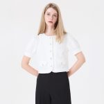 สะท้อนรสนิยมของผู้หญิงที่รักความเนี้ยบด้วย เสื้อผ้า Jacquard สีออฟไวท์ ดีไซน์กระดุมแต่งมุกขอบโลหะเพิ่มสวยอย่างพอดี ตัดกับผิวผ้าเนื้อละเอียดที่ทอลายดอกเล็ก เพิ่มมิติและความมีเท็กซ์เจอร์ ตกแต่งขอบคอและกระเป๋าด้วยเชือกถัก เสริมให้โครงเสื้อให้ดูพอดีตัวและมีวอลลุ่มกำลังดี เนื้อผ้า Jacquard คงทรง ระบายอากาศได้ดี และให้สัมผัสนุ่ม เหมาะกับลุค ที่เรียบ สวย ในนสไตล์ของตัวเอง