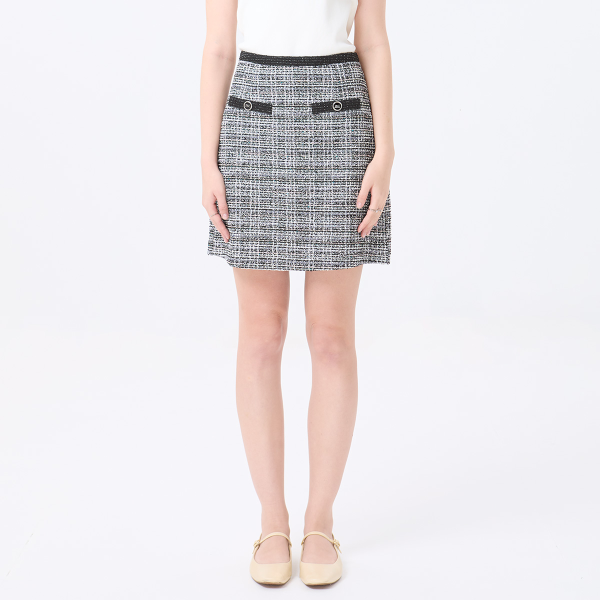 กระโปรง Knit Tweed สีดำดีไซน์สวยที่สะท้อนสไตล์สาว Ep อย่างลงตัว  นิต ทวีตให้สัมผัสนุ่มแต่ยังคงทรงสวย ช่วยเสริมรูปร่างให้ดูสมส่วน โทนสีดำยิ่งช่วยให้สัดส่วนดูเพรียวและโดดเด่นขึ้น ตัดด้วยกระดุมโลโก้สีทองด้านหน้าที่เพิ่มความพรีเมียม พร้อมกลิ่นอายความหวานแบบโคเรียลักชูรี เหมาะสำหรับวันที่ต้องการลุคสุภาพ อ่อนโยน แต่ยังคงความแพงและตัวตนที่ชัดเจนในทุกมุมมอง คำอธิบายสินค้า : – กระโปรงนิต ทวีต สีดำ ความยาวเหนือเข่า – ซิปซ่อนด้านข้างพร้อมตะขอ – กระเป๋าตกแต่งขอบดำและกระดุมโลโก้สีทอง – มีซับในทั้งตัว ช่วยให้กระโปรงอยู่ทรง วัสดุ : 91%POLYESTER 8%ACRYLIC 1%SPANDEX คำแนะนำ : สามารถซักด้วยมือหรือเครื่องซักผ้าในโหมดปกติ รีดด้วยอุณหภูมิอ่อน * นางแบบสูง : 175 เซนติเมตร (ใส่ไซซ์ M) ** สินค้าจริงอาจมีสีที่แตกต่าง เนื่องจากแสงในการถ่ายทำและการแสดงค่าสีของจอ
